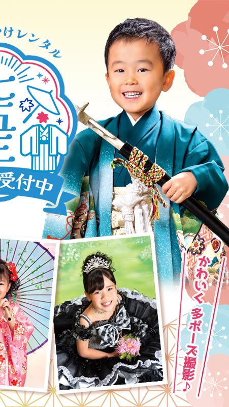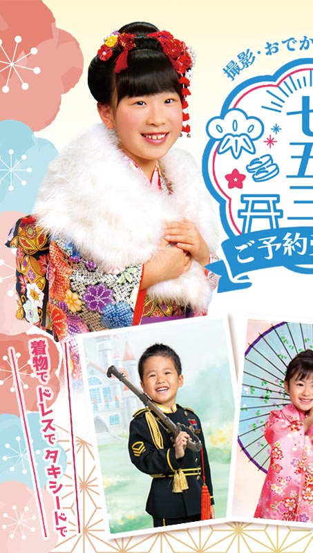。着物で、ドレスで、タキシードで、かわいく楽しくお写しします!